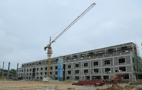 目前,该项目中的硫酸、硫酸钾、硫基复合肥3个工段的主厂房、设备管道基础、路面硬化等基建项目已接近尾声,设备安装施工队已逐步进入现场。6月26日,硫基复合肥两台重量约为100吨的喷浆造粒机吊装就位,它标志着该项目正式进入设备安装阶段。