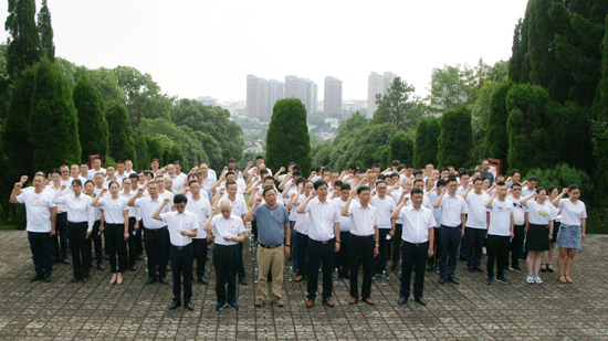 全体党员伫立在襄西革命烈士纪念碑前,奏唱国歌。公司党委书记、董事长万建华同志和公司党委委员、总经理徐化林同志怀着无比崇敬的心情拾级而上,为革命烈士纪念碑敬献花篮。在场的所有人员默哀吊唁,并集体肃立庄严宣誓,重温入党誓词,大家面对鲜红党旗高举右手,对党许下庄严承诺。