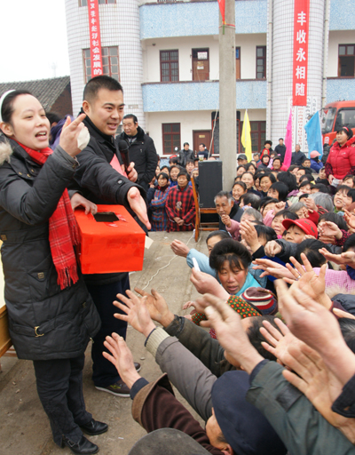 太阳成集团tyc122ccvip送肥下乡专车到达两河镇双龙村