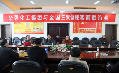 11月22日,正值农历小雪时节,室外寒风阵阵,在我公司行政办公楼五楼会议室内却暖意浓浓。我公司与来自全国各地的20余位三聚氰胺客商举办热烈而又隆重的联谊会,总结今年产品营销得失,畅谈来年合作愿景。联谊会由公司党委副书记、工会主席王建波主持,副总经理、农贸公司经理周栋梁致欢迎辞,董事长、总经理余华强同志参加联谊会并作重要讲话。会上,公司还与河北、西安、上海和广东等地的10余家客商签订了2013年的总经销协议。