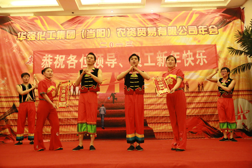 集团公司副总经理、农资贸易有限公司总经理周栋梁同志和集团公司董事长、总经理余华强同志分别致辞和讲话。对农贸公司磷复肥分公司员工提前完成全年15万吨复合肥销售任务表示热烈的祝贺!并向全体员工及家属致以诚挚的新年问候!